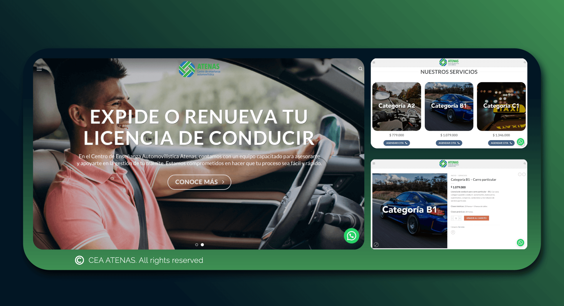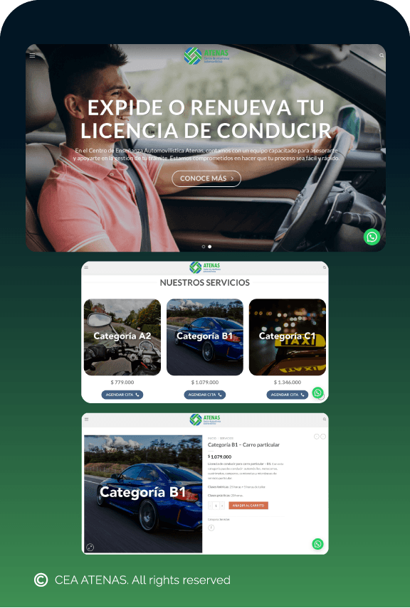 Desarrollo de la interfaz web para CEA Atenas, una escuela de conducción, en colaboración con un equipo multidisciplinario. El objetivo fue crear una experiencia digital clara, funcional y orientada a potenciales estudiantes, facilitando el acceso a información sobre cursos, horarios, requisitos y contacto. Se trabajó en la arquitectura del sitio, wireframes, navegación intuitiva y un diseño visual alineado con la identidad institucional.
