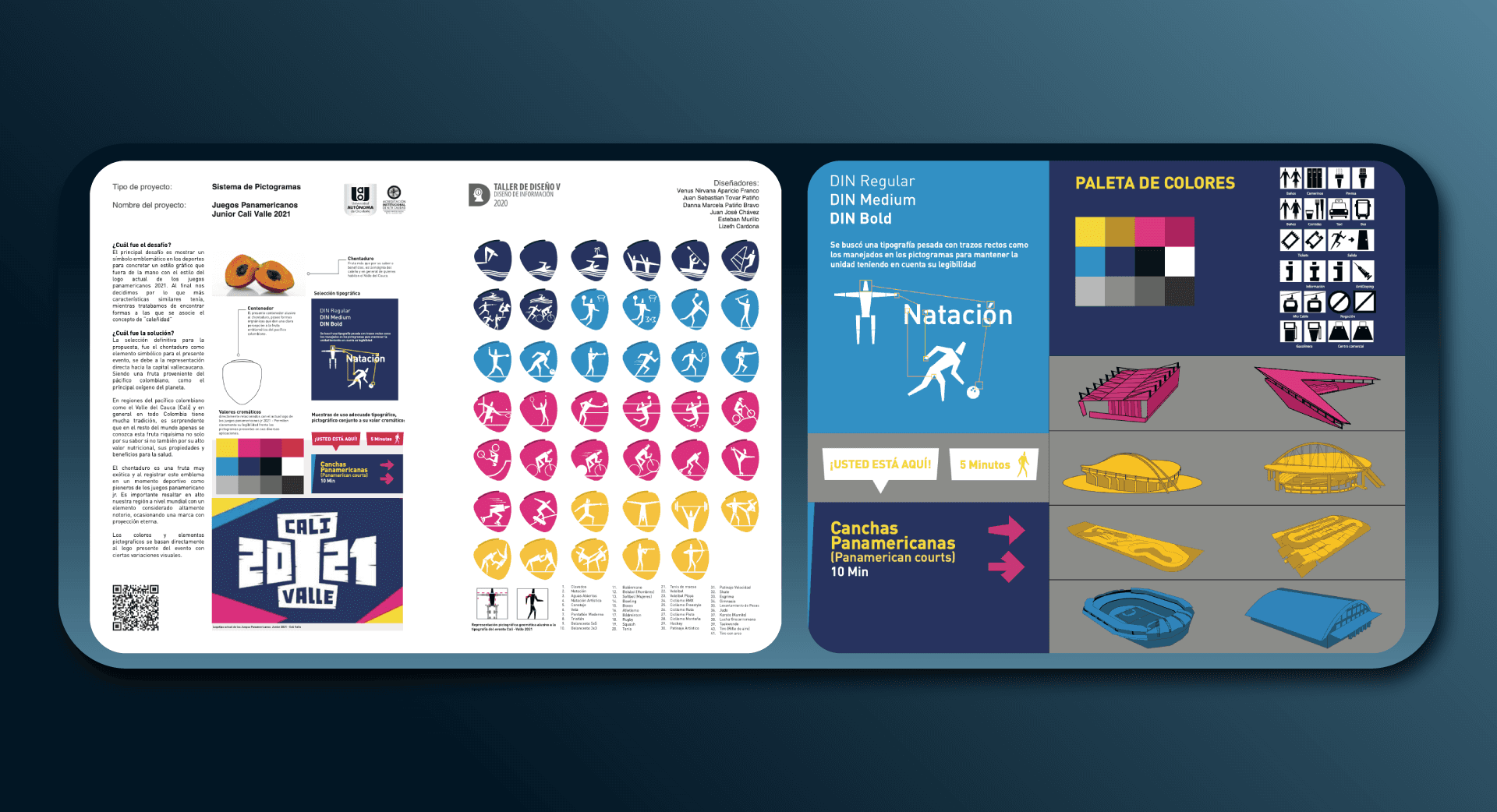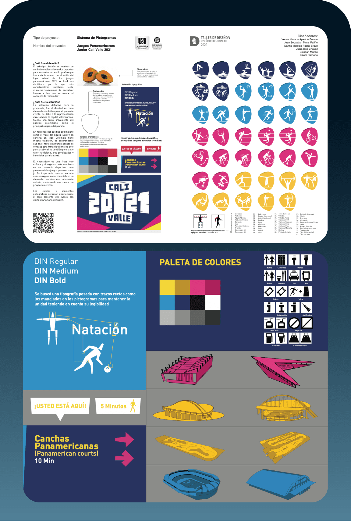 Proyecto desarrollado en equipo para los Juegos Panamericanos Junior Cali 2021, enfocado en el diseño de información clara y accesible para participantes y público general. Se crearon piezas visuales como mapas de sedes, cronogramas de competencias y elementos señaléticos, todo alineado con la identidad gráfica oficial del evento. El trabajo colaborativo permitió una planificación eficiente y una ejecución visual coherente en distintos formatos.